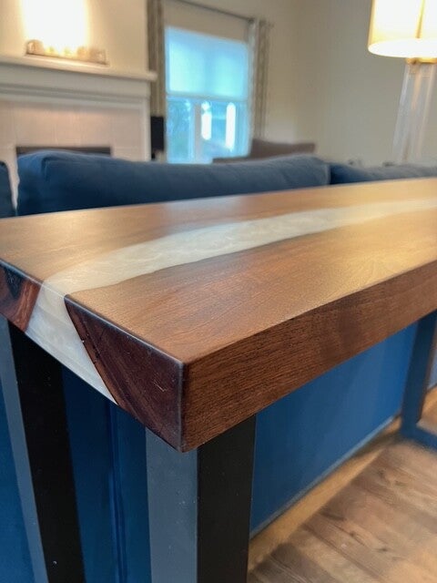 Black Walnut and Pearl Epoxy Sofa Table and Side Table